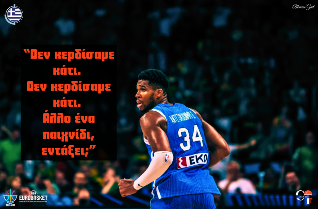 Κι αν ο Σπανούλης είναι η φλόγα που καίει στον πάγκο, μέσα στο παρκέ αυτή η φλόγα μετατρέπεται σε ενέργεια και ολοκληρωτικό μπάσκετ από τους παίκτες. Ο Γιάννης, ο καλύτερος παίκτης στον κόσμο, δείχνει φέτος πιο ώριμος από ποτέ. Μετά τη λήξη της αναμέτρησης με την Λιθουανία, είπε χαρακτηριστικά στους συμπαίκτες του: “Δεν κερδίσαμε κάτι, δεν κερδίσαμε κάτι. Άλλο ένα παιχνίδι, εντάξει;”. Εκείνος που… από το τίποτα, έχει κερδίσει τα πάντα. Αυτό είναι το μεγαλείο της ελληνικής ψυχής του Γιάννη.