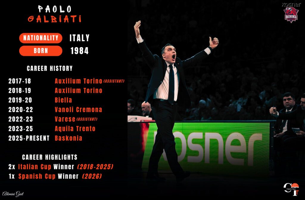 Ο κόουτς Γκαλμπιάτι εξαργύρωσε την πολύ καλή του παρουσία στο Τρέντο, αναλαμβάνοντας τον πάγκο της Μπασκόνια σε ένα ομολογουμένως ιντριγκαδόρικο ταίριασμα. Είναι ένας άνθρωπος που ζει το παιχνίδι, βγάζει πάθος, εξωτερικεύει κάθε συναίσθημα και μιλάει με τη χαρακτηριστική ιταλική προφορά του τα αγγλικά. Πίσω όμως από την ένταση, υπάρχει ένας προπονητής ικανός να φτάσει αθλητές στο επόμενο επίπεδο.