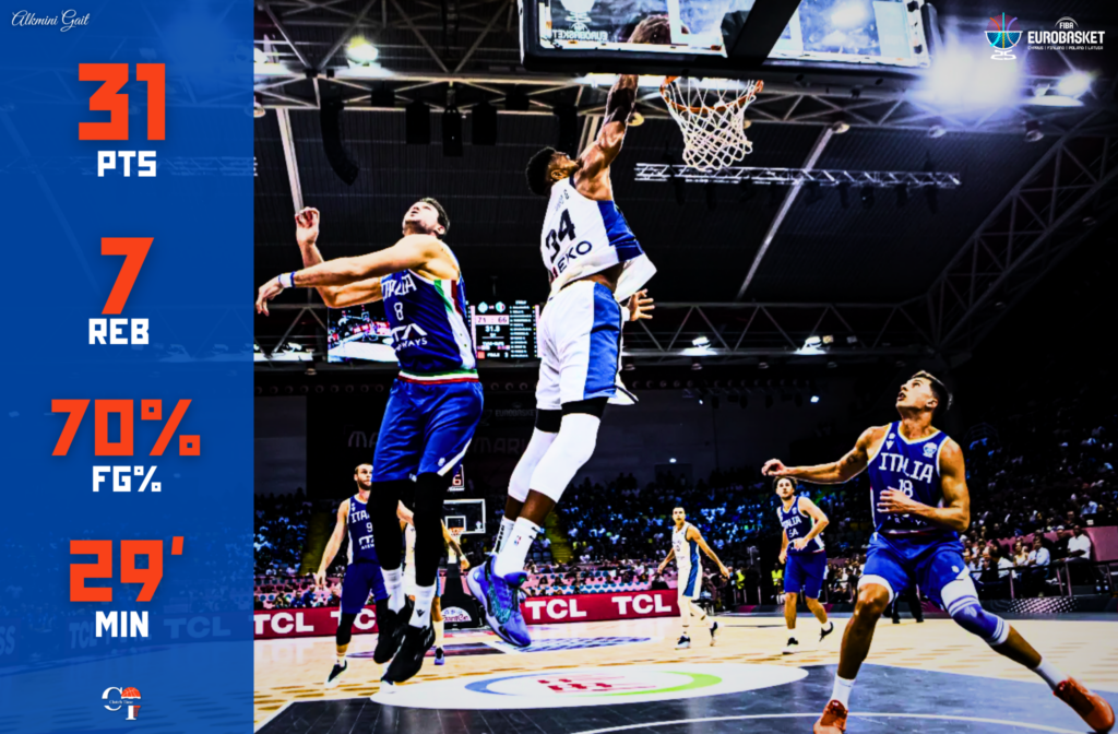 Το πρώτο σόου του Greek Freak ήταν απλά… εκπληκτικό! Όπως κάθε φορά που φοράει τη γαλανόλευκη, μπήκε στο γήπεδο χωρίς να βλέπει τον αντίπαλο. Ήταν… ασταμάτητος – δεν ξέρω αν το sniper που σκέφτηκε ο Ποτσέκο θα ήταν μία λύση – σκοράροντας 31 πόντους σε λιγότερο από 30 λεπτά συμμετοχής. Για περίπου 25 λεπτά, μάλιστα, ήταν η μόνιμη πηγή σκοραρίσματος για την Ελλάδα, έχοντας πετύχει 23 από τους 50 πόντους της Εθνικής ως εκείνο το σημείο. Πρόκειται για έναν παίκτη “άρχοντα της ρακέτας”. Όταν παίρνει την μπάλα κοντά στο καλάθι, ο αντίπαλος δεν έχει καμία απολύτως τύχη. Δεν είναι τυχαίο ότι ο Έλληνας σουπερ-σταρ πήρε 16 προσπάθειες πολύ κοντά στο καλάθι και βρήκε στόχο στις 12 από αυτές.