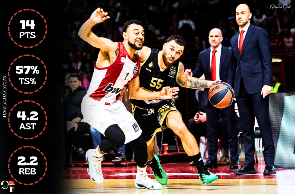 Σε ατομικό επίπεδο, ο Μάικ Τζέιμς είναι το μεγάλο «όπλο» της Μονακό. Στα ματς της κανονικής περιόδου, οι Πειραιώτες του έκλεισαν τον δρόμο προς το καλάθι, ειδικά στα pull-up σουτ, αναγκάζοντάς τον να παίξει περισσότερο δημιουργικά — κάτι που φαίνεται και στις 12 ασίστ που έβγαλε κατά μέσο όρο. Ωστόσο, τώρα στον ημιτελικό ίσως χρειαστεί να αλλάξουν στρατηγική. Να του δώσουν λίγο περισσότερη ελευθερία στην εκτέλεση, με σκοπό να τον παγιδεύσουν πιο “έξυπνα” όταν θα επιχειρήσει να οργανώσει το παιχνίδι. Με αυτόν τον τρόπο, ο Ολυμπιακός μπορεί να μειώσει περισσότερο αποτελεσματικά τη συνολική του επιρροή στο παρκέ.